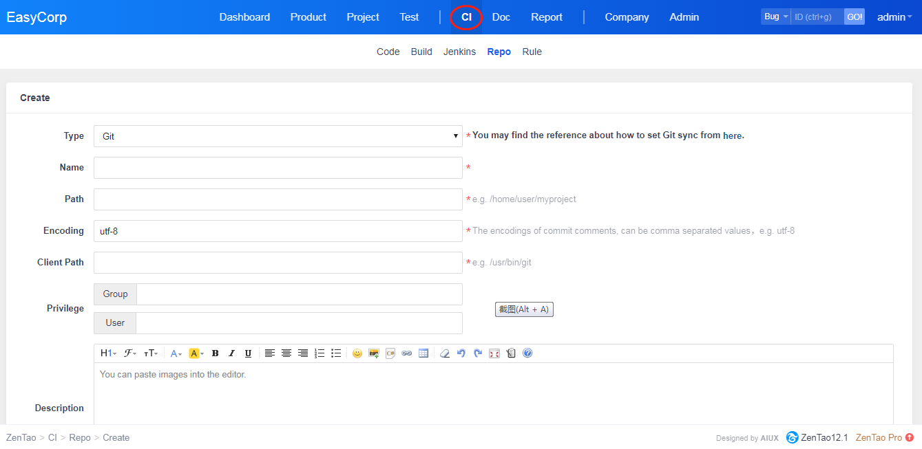 6795 Add menus and breadcrumbs of CI module in ZenTao.