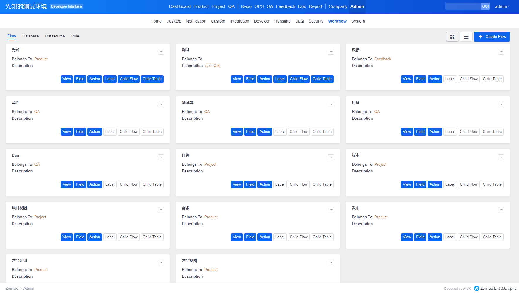 ZenTao Enterprise 3.5.alpha has been released! This release is mainly to integrate the workflow feature which can be customized.