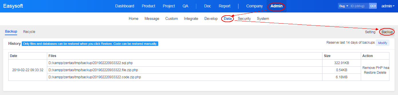 Done! Now you can visit ZenTao using the IP address you used before. For more about data backup in ZenTao, click HERE.